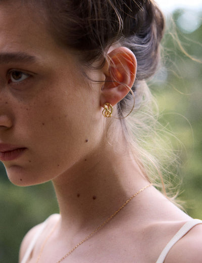 Thin openwork hoops with interlacing lines that shape their silhouette.