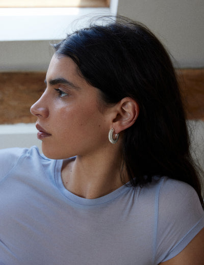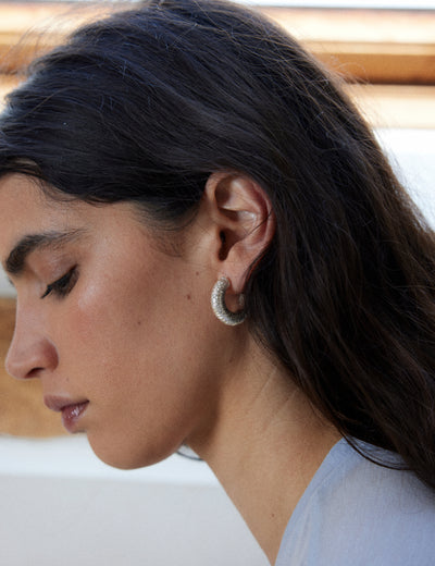 Grandes créoles à la texture craquelée.