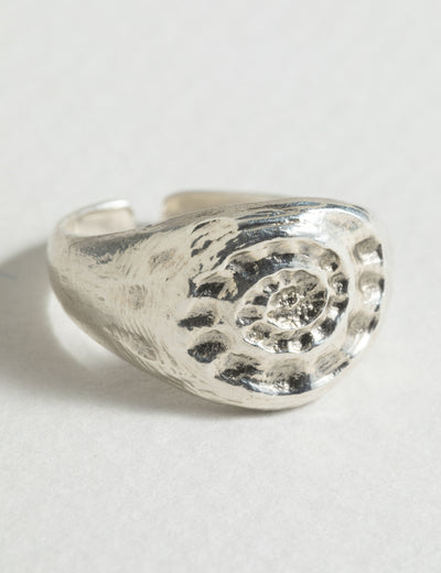 Bague à la forme de chevalière, travaillée d’après une empreinte fossile.