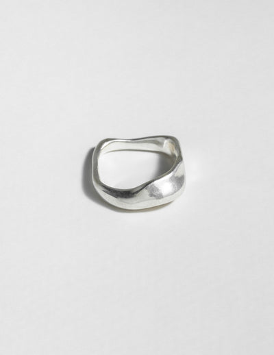 Bague à la silhouette irrégulière. Selon l’angle choisi, elle dévoile des contours différents, plus ou moins épais.