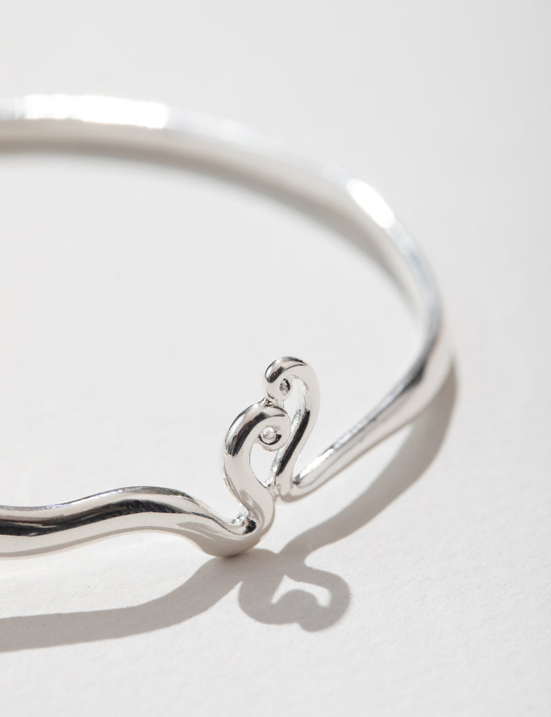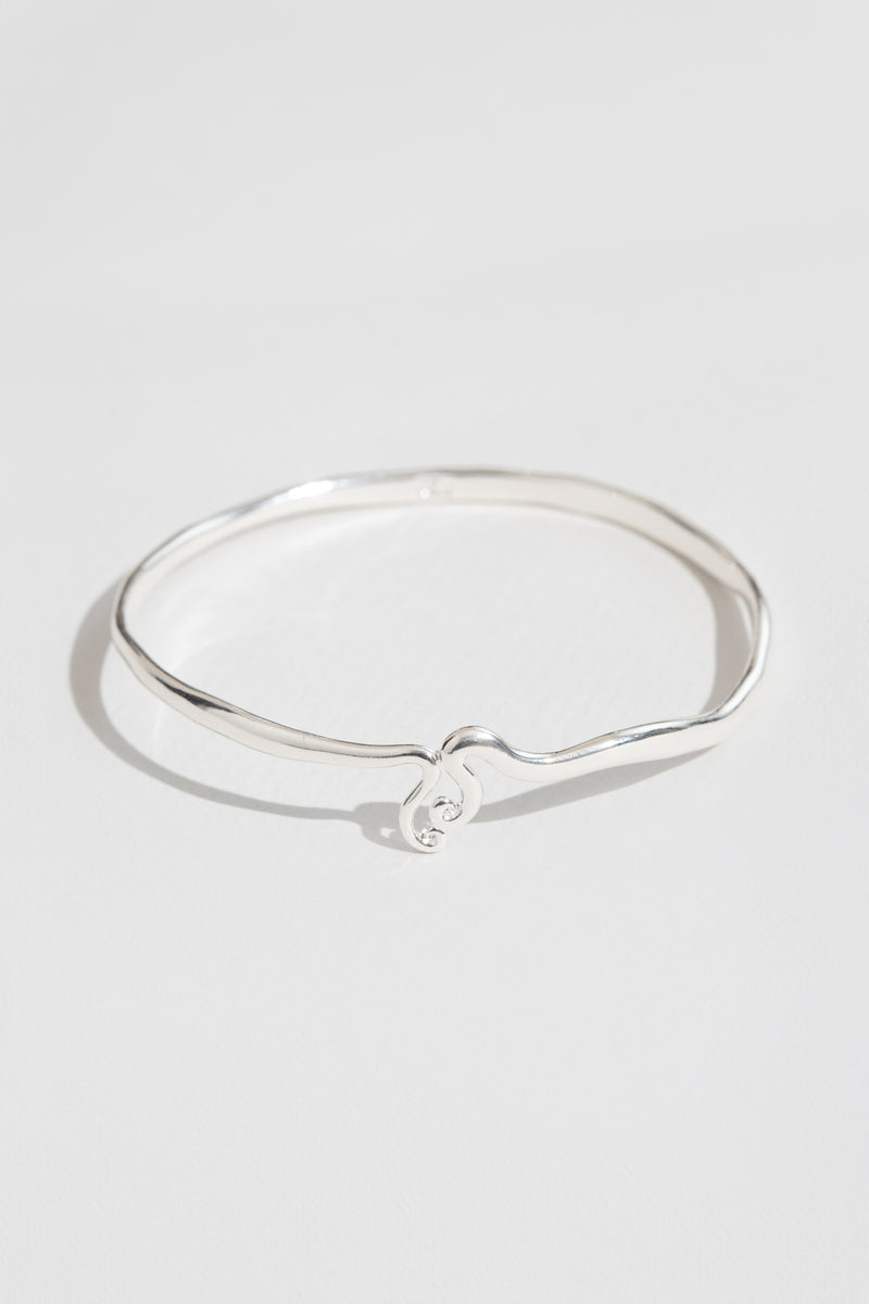 Jonc aux lignes fines et polies, ponctué d’un motif sculpté de volutes.