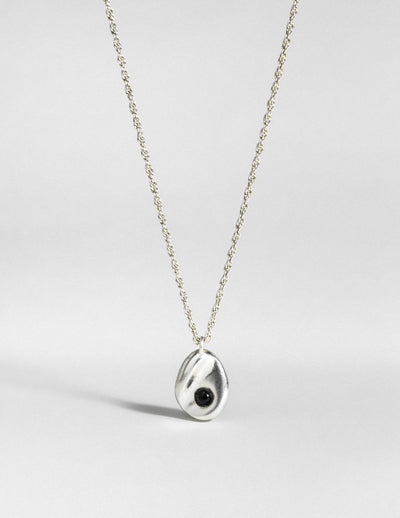 Pendentif modelé en forme de pétale, agrémenté d’une pierre d'Agate noire et monté sur une chaine finement travaillée.