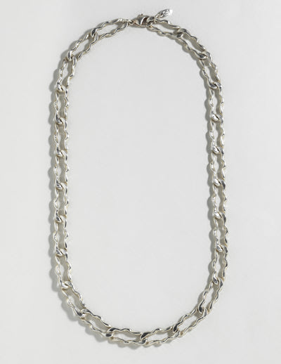 Collier aux maillons de forme irrégulière, larges et ajourés.