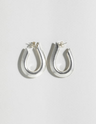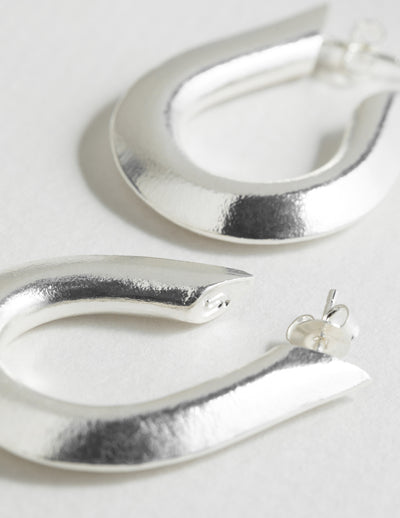 Grandes créoles ovales, au profil biseauté et à la surface finement grainée.