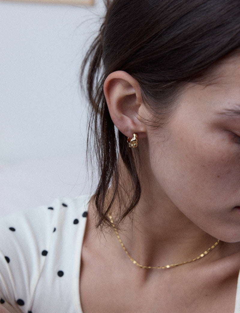 Petites créoles huggies au volume irrégulier, comme sculpté par la lave.