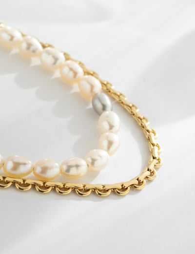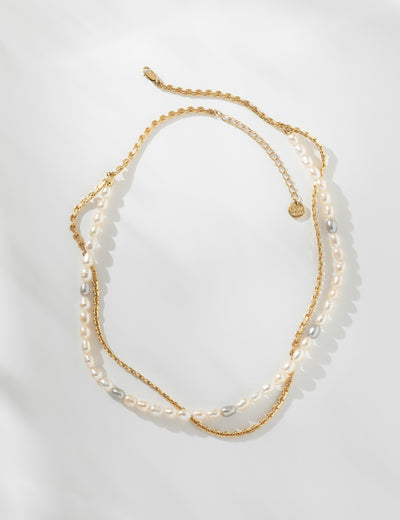 - Le collier contient des perles naturelles d'eau douce blanches et gris bleuté