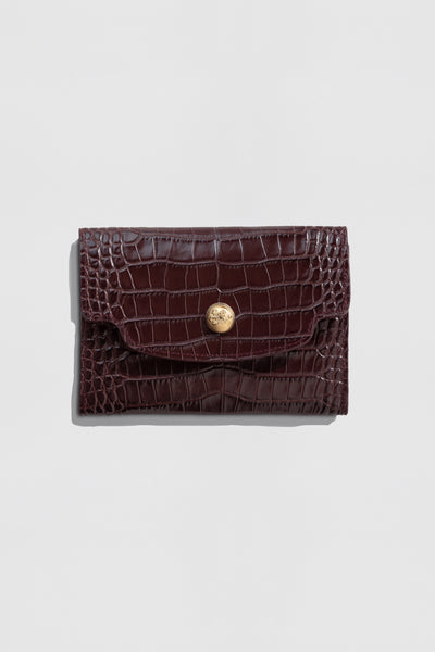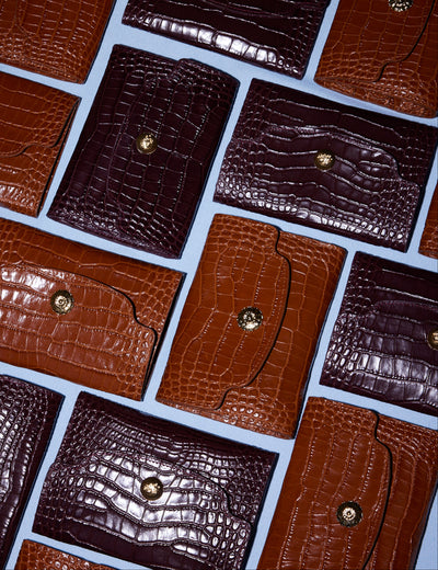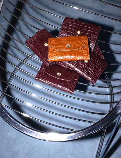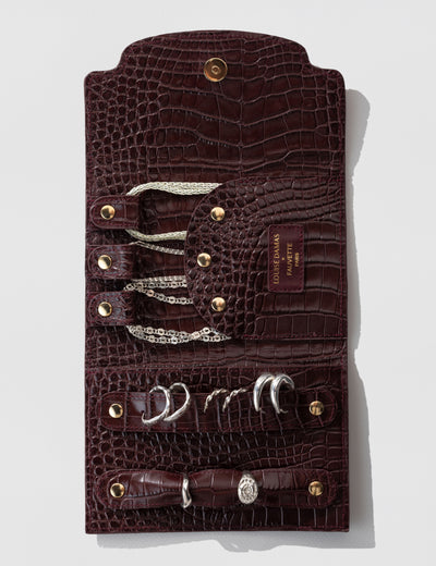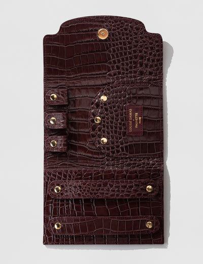 Etui à bijoux en cuir embossé croco, couleur Prune.